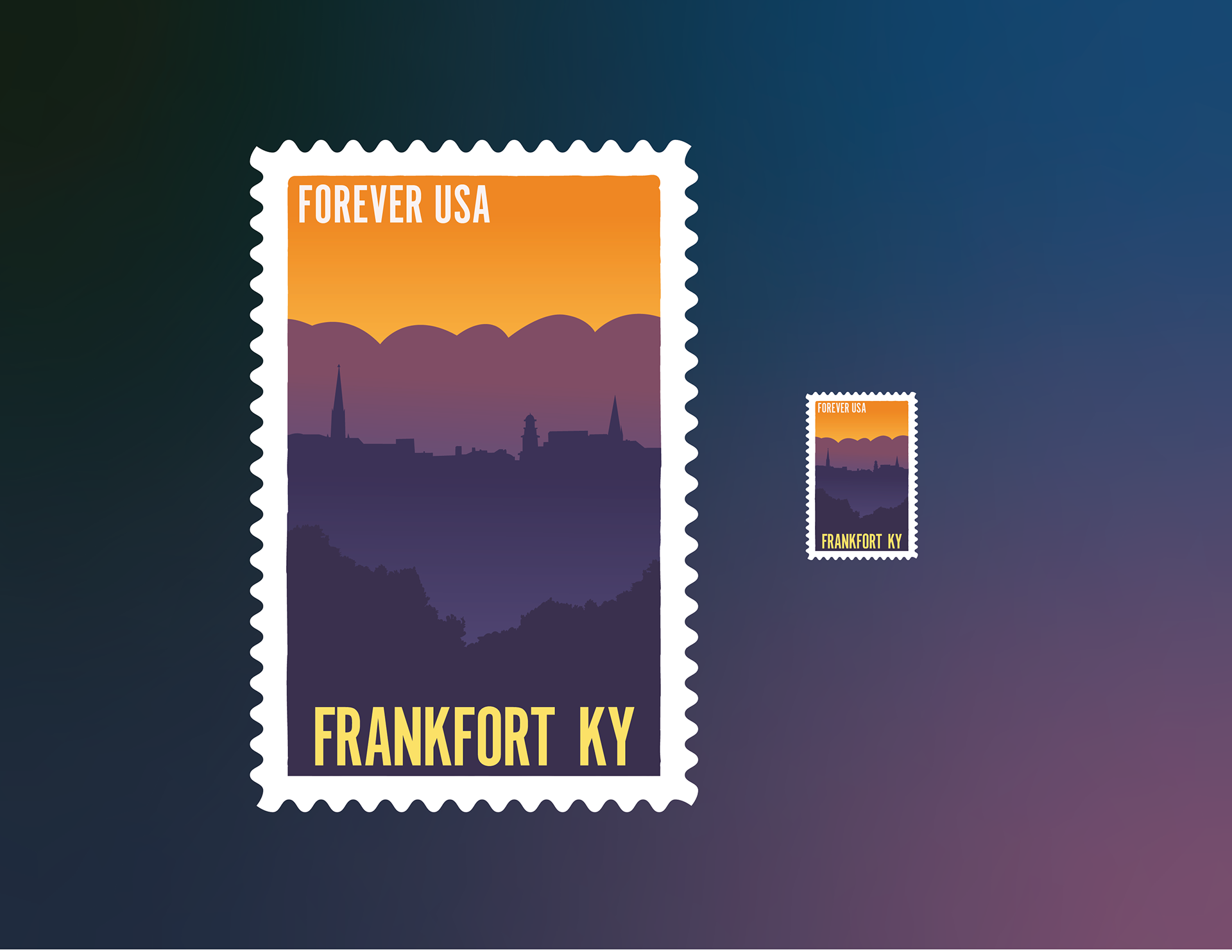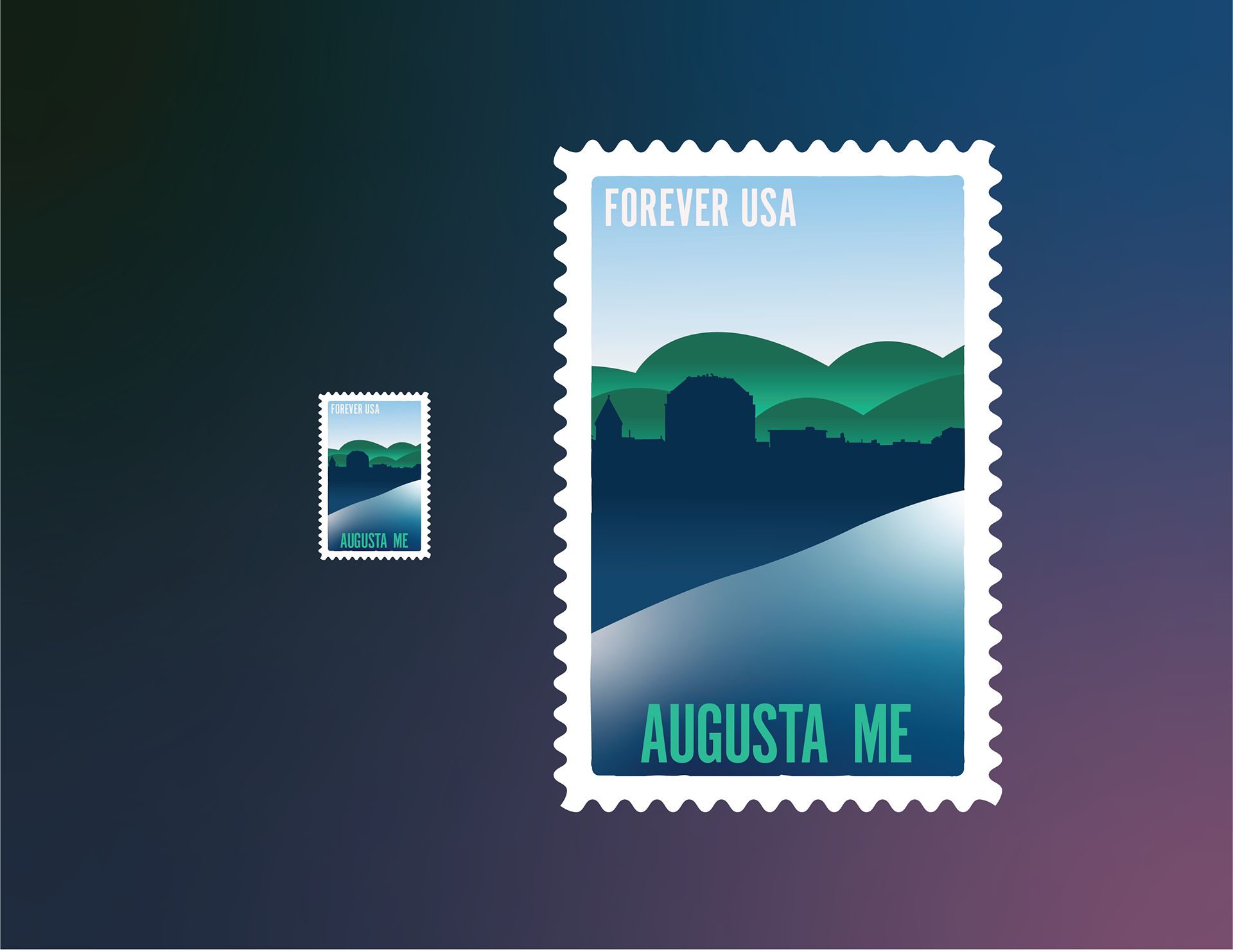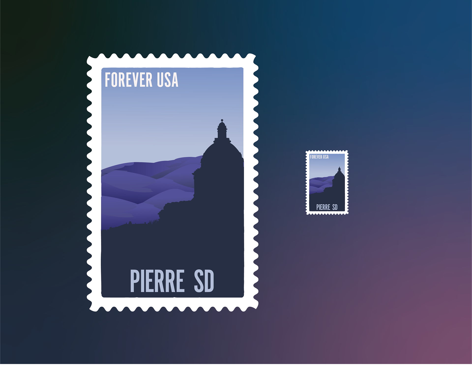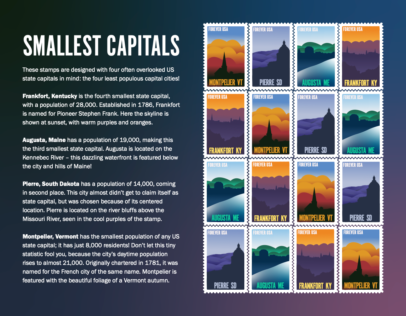 These stamps were designed for my design class in Fall 2021. The collection of 4 showcases the four smallest US Capitals.